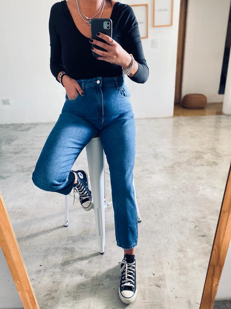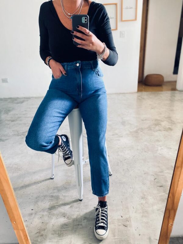 Descripción: Jean Azul Clasico MOMFIT Ruedo Gastado