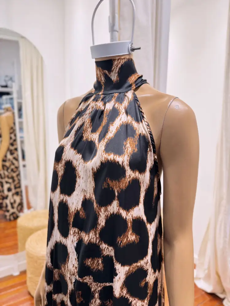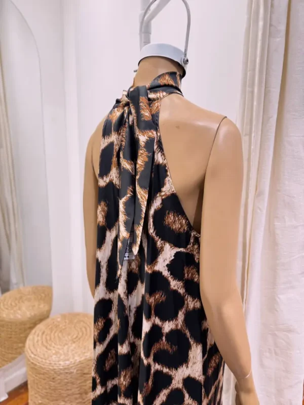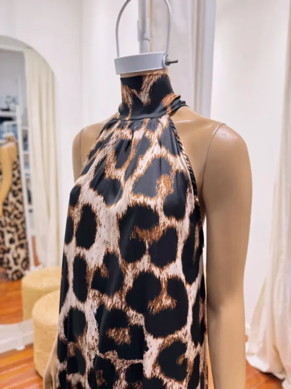 Descripción: Vestido de seda amplio con lazo en el cuello para atar.